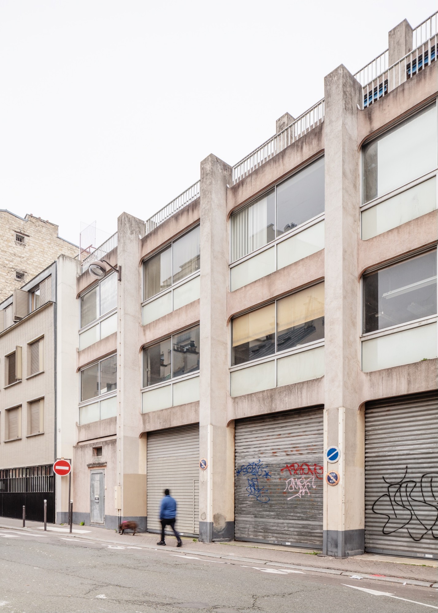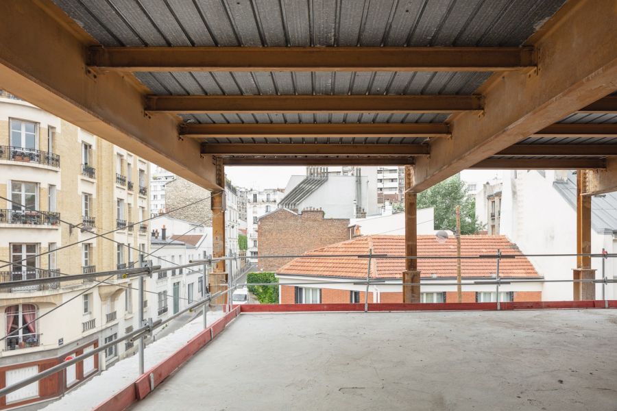 Our practice has won, together with real estate developer Coffim, the competition for the transformation of a former printing house into a hotel in the 20th district in Paris. The site is in the heart of a grassroots, industrial neighbourhood, typical of the East side, Rue de la Cour des Noues. The building will also host a coworking, a cocktail bar and a garden. On the street side, the facade made of concrete panels hides a metallic structure. Our project enlightens the industrial heritage by revealing the existing qualities of the printing house, through a new facade made of steel. Also, the public access to the coworking and patio in the center of the program is at the core of the concept. More picture of the site before transformation here.