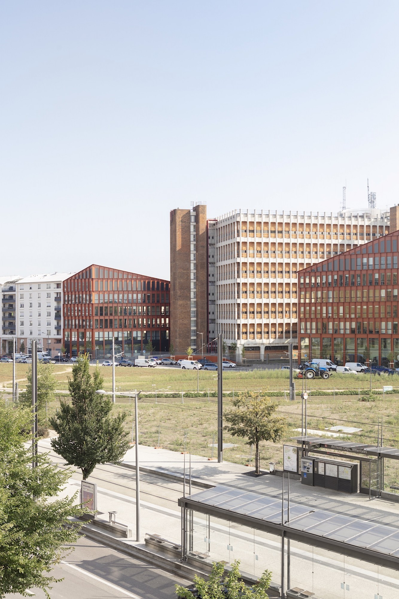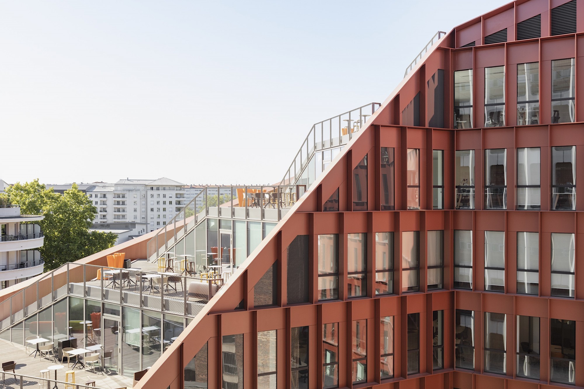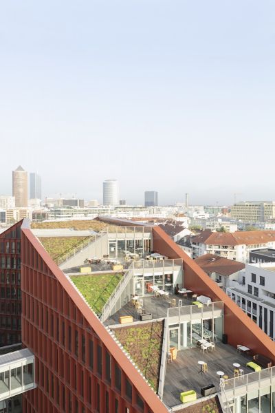 L’ensemble forme un volume singulier et un repère fort en lisière du quartier de la Part-Dieu.