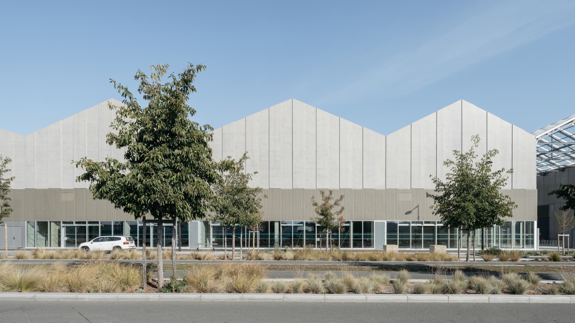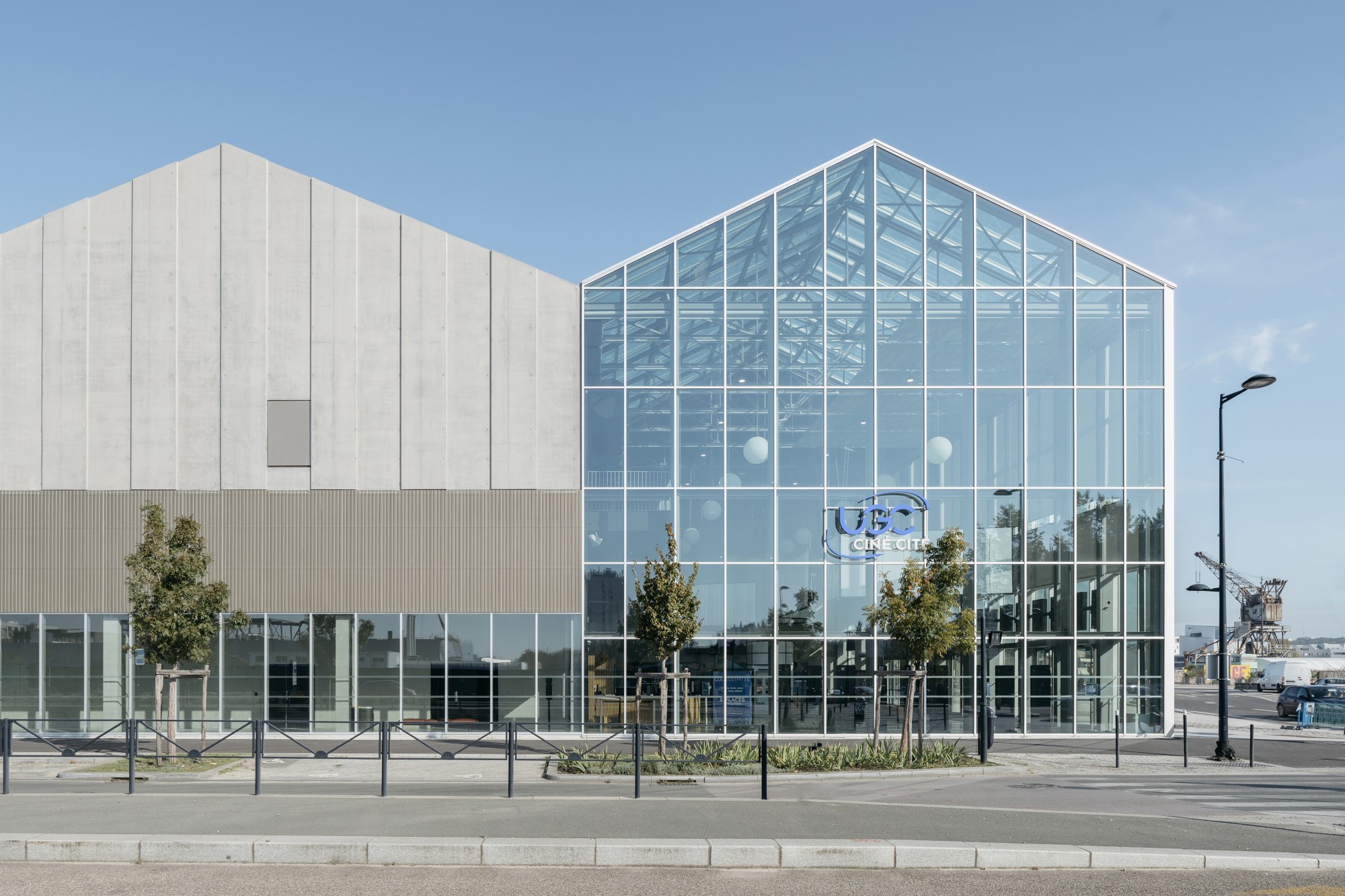 Le cinéma s’étend entre le quai et la rue Lucien Faure sur deux îlots d’environ 80 m de long par 45 m de large, séparés par une sente piétonne couverte. Son entrée fait face à la nouvelle place du Pertuis. Depuis le hall jusqu’aux salles, l’équipement est largement ouvert sur la ville. La longue circulation du premier étage, conçue comme une rue intérieure, offre des séquences de vues sur Bordeaux, sur l’eau des Bassins à flot, et participe à l’animation urbaine des façades ; les sorties de salles réparties sur l’ensemble de l’îlot ou encore la destination commerciale du RDC participent à cette recherche de dialogue entre le nouveau cinéma et son environnement. La forme, le jeu des toitures et l’organisation du bâtiment exploitent les atouts du site pour augmenter sa qualité d’usage et son bilan énergétique. Les surfaces vitrées et les systèmes de protections solaires sont adaptés à leur orientation pour optimiser le confort thermique, acoustique et visuel. L’aménagement de jardins extérieurs en surplomb du quai permet d’apporter de la lumière naturelle au centre du bâtiment, tout en créant des respirations végétales pour les occupants autant que pour les piétons qui parcourent les quais.