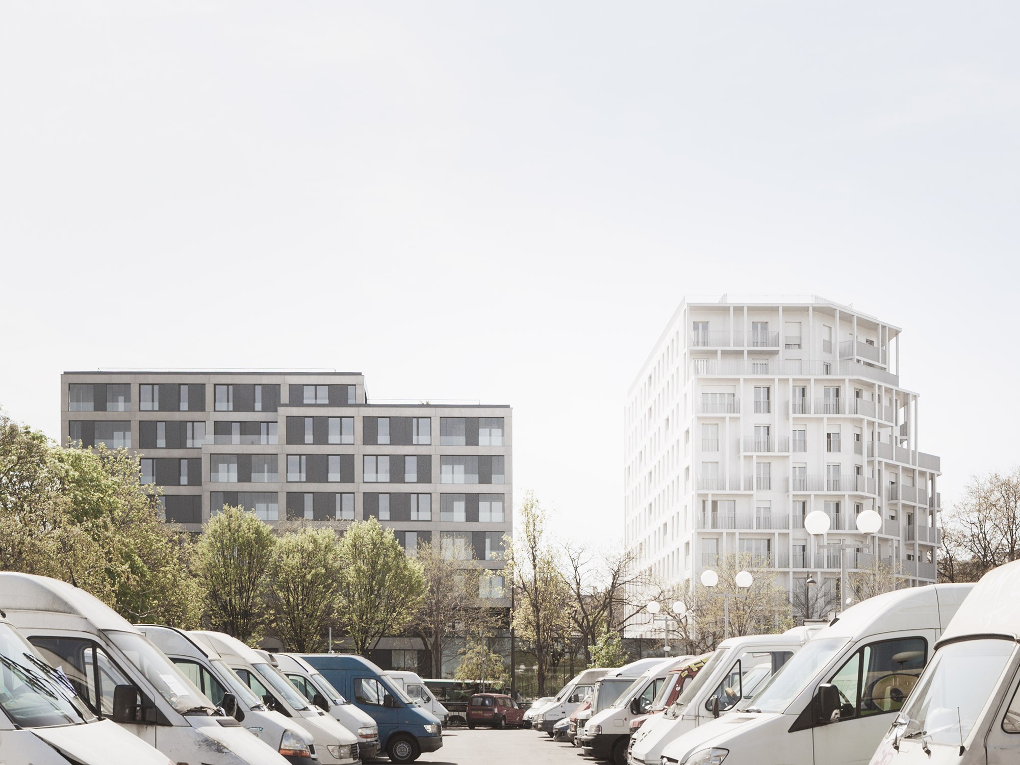 En créant un vaste cœur d’îlot orienté plein sud et une prairie sur le toit du restaurant, nous avons cherché à respecter l’esprit originel de la Ceinture verte, en phase d’extrême densification. Compacité, faille, biais à l’angle de la parcelle, notre projet réinterprète le langage architectural des HBM voisins pour améliorer le confort urbain, optimiser les surfaces habitables et offrir des façades généreusement vitrées.