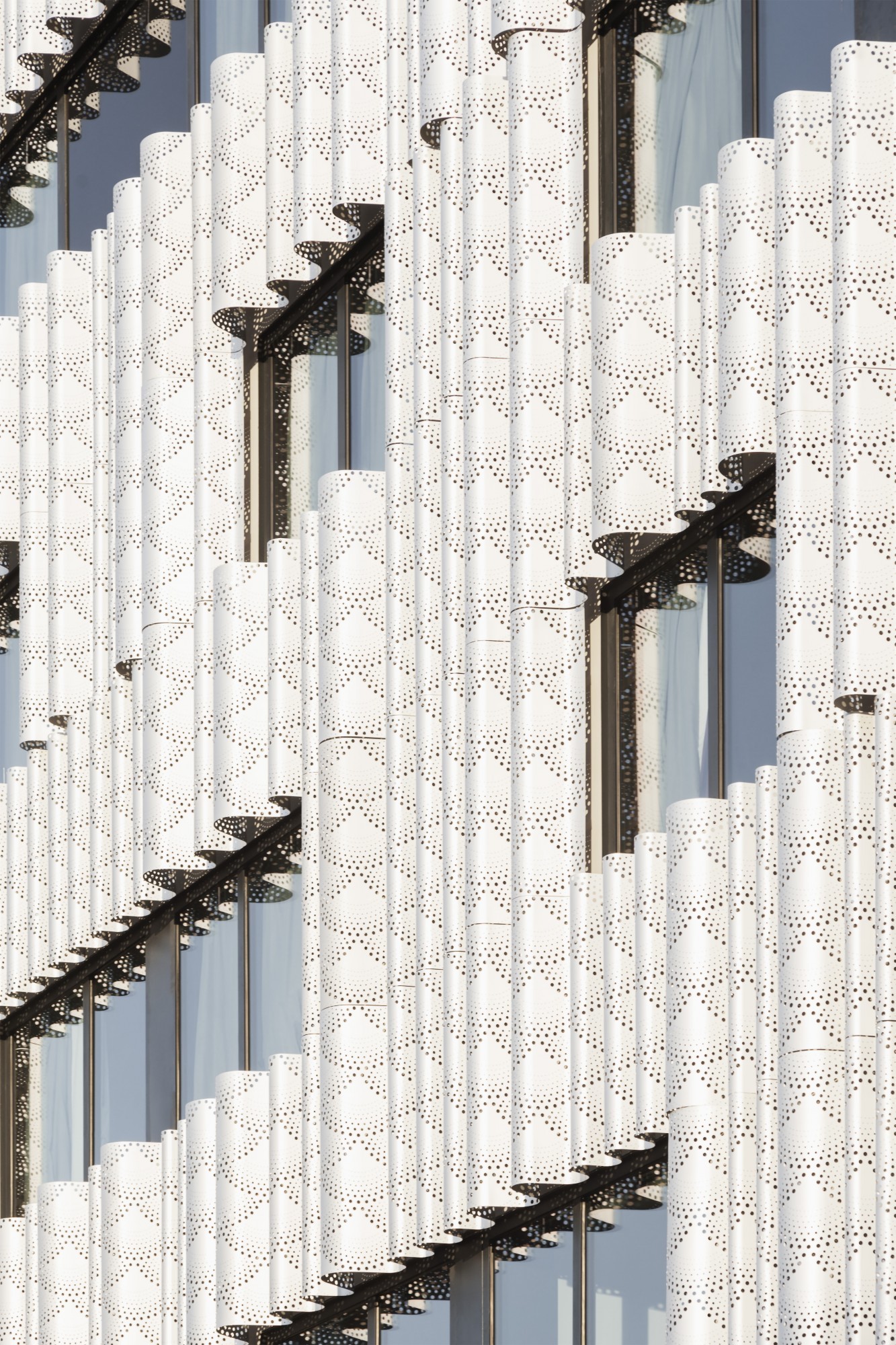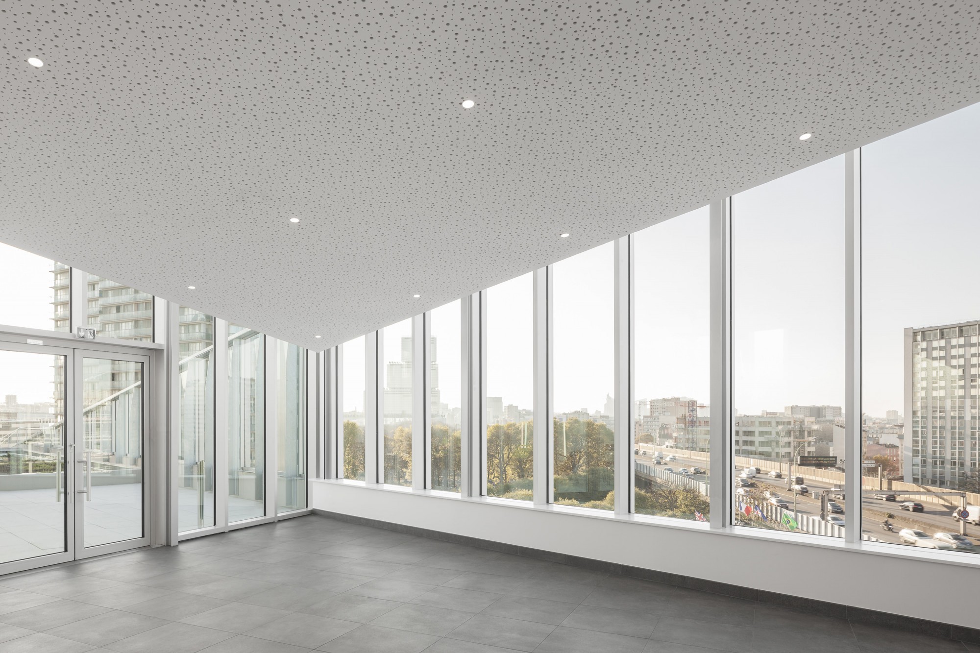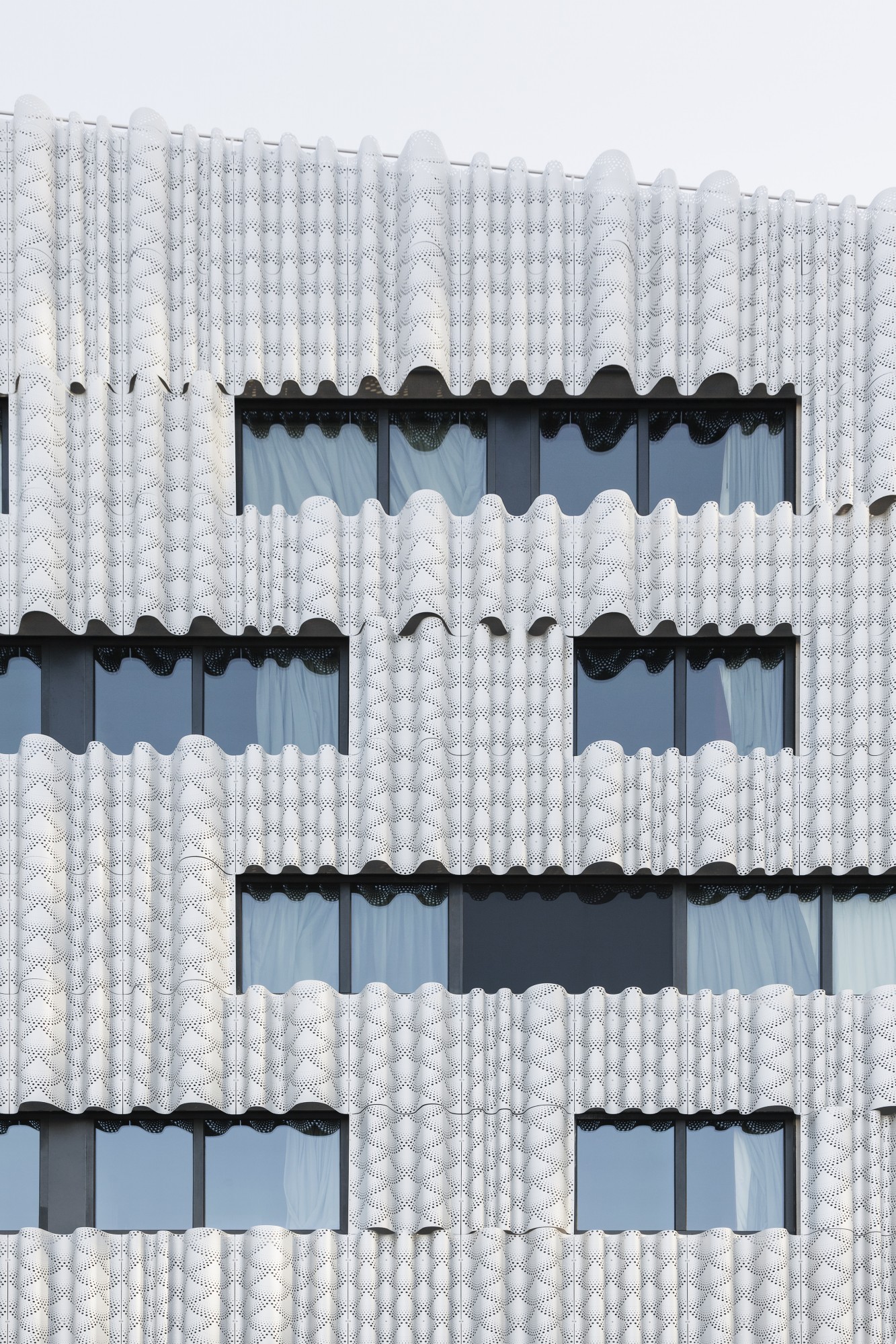 La façade contribue au confort urbain grâce à l’onde métallique de son bardage qui difracte le bruit des véhicules, tout en apportant un peu de souplesse et de volupté dans cet univers périurbain.