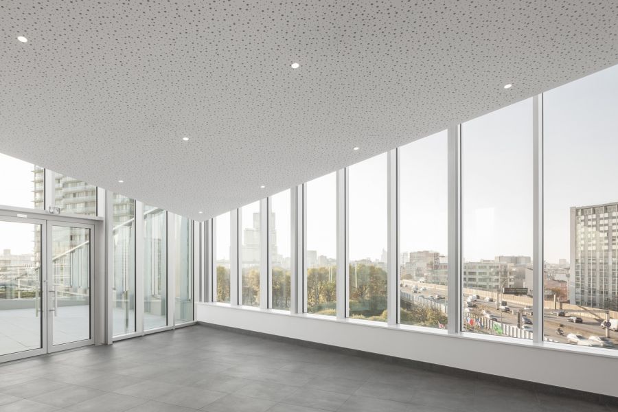 Notre proposition architecturale répond à trois enjeux : l’articulation d’une diversité d’espaces et d’échelles a priori difficiles à faire cohabiter ; le respect des vues et l’intimité des habitants de la barre de logements sociaux à l’arrière de la parcelle ; et la réduction de la réverbération acoustique sur la place publique.