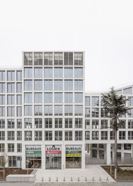 This office building plays an important role in the development of the Nozal Front Populaire neighbourhood development zone on the northern edge of Paris. It borders Rue du Pilier, which is set to become a busy urban artery as the shortest route from the new Place du Front Populaire to the Canal de l'Ourcq.