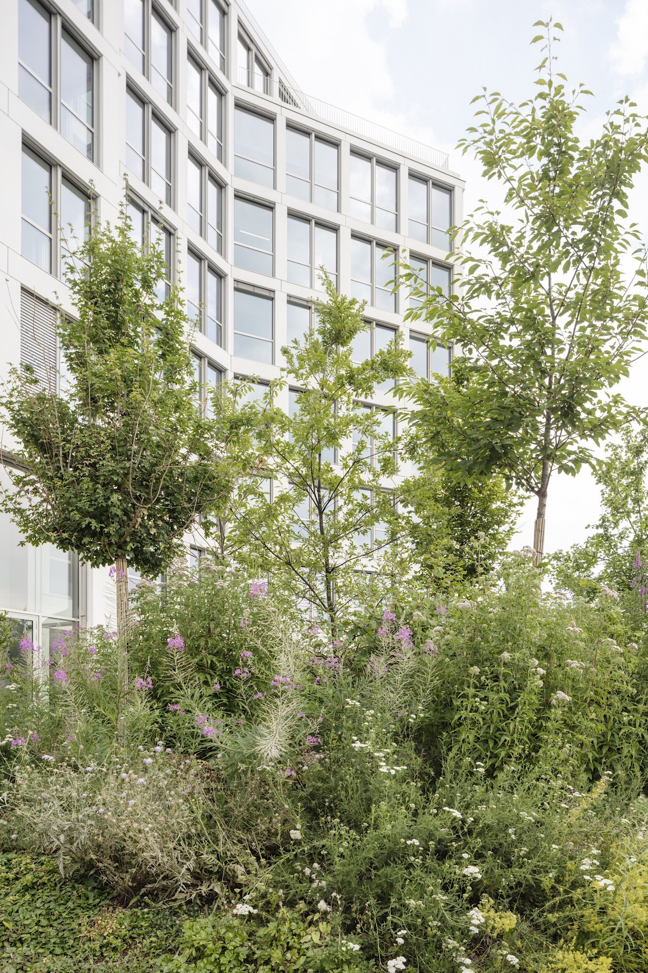Our project reconciles the functional requirements of a blank office building (compact, divisible, typologically homogenous with a continuous depth of 18m, identical floors, etc.) with a division of massing that introduces a form of relief, of rhythm to aid its integration into the urban landscape. The compact volume is subdivided into four parts articulated by slight translations and rotations. These variations give a sequential reading of the facades while maintaining a functional unity from the 2nd floor up. On the ground floor an entrance porch opens right through to the internal gardens and provides independent public access to a gym, which itself is given increased visibility from the street by means of a double-height, fully glazed facade.
