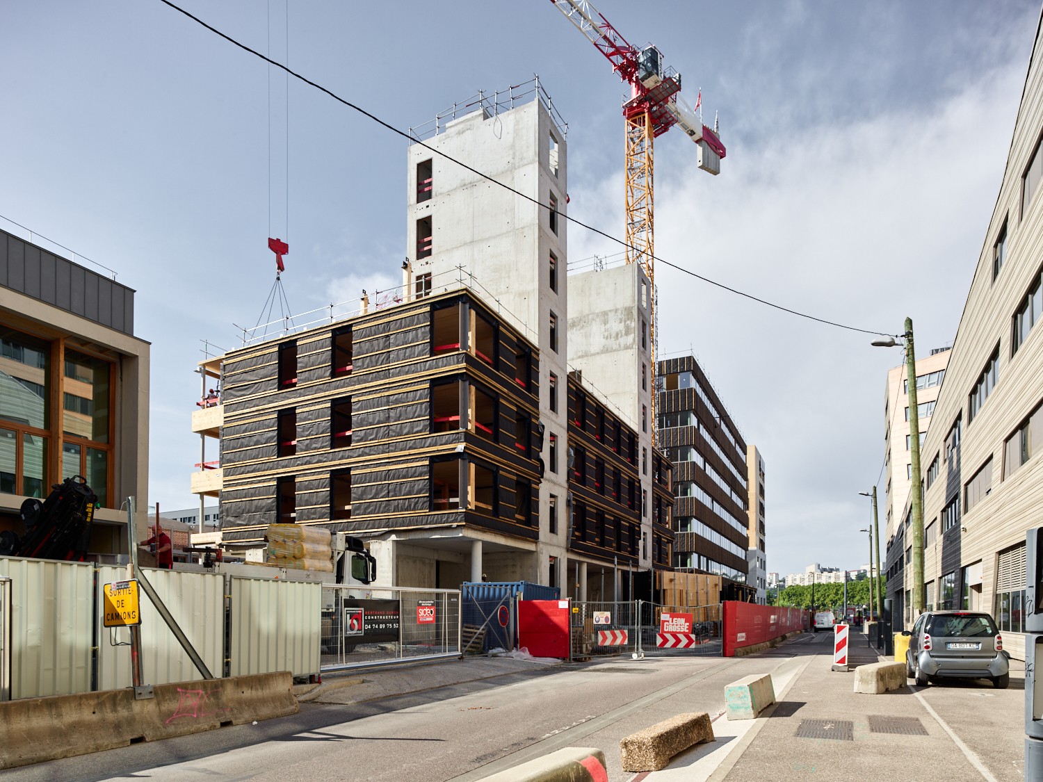 Around the old wholesale market, now converted into a school, the practice has designed a tower and building of social housing. Built in wood, the development replies to both the ambition of a low-carbon district, as well as the anticipated timeframe for opening the school. The white concrete facades of the four buildings (two designed by our colleagues, Insolites) set off planting on the facades and at the centre of the block. The creation of single volumes demands rigorous attention to materials and architectural detailing, ensuring the longevity of the constructions.