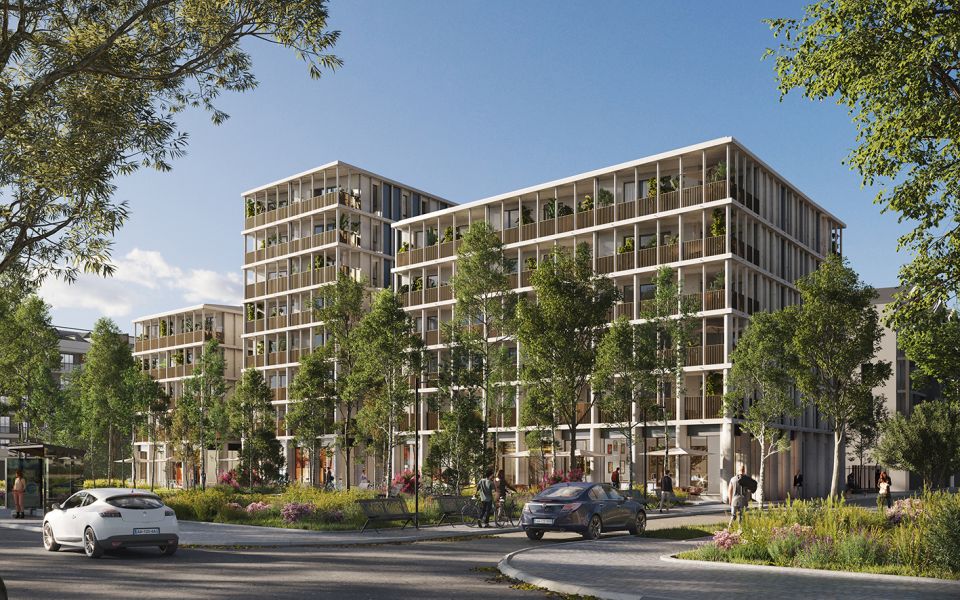 In Bordeaux's Brazza district, the three buildings are aligned along the Garonne riverfront, separated by 6-metre gaps running perpendicular to the river to let the sun through into the development. The poplars of the Angéliques Park riverside landscaping run along the front. As well as a south-facing garden, generous loggias extend the upper apartments. Inside, the design puts the accent on a range of framed views over the landscape, and on sunlight. The loggias' trapezoidal geometry reinstates an orthogonal plan for ease of fit-out.