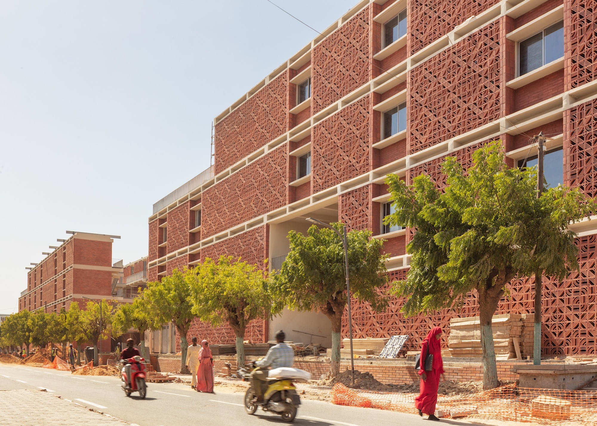 Symbole d’excellence en Afrique de l’Ouest, l’université Cheikh Anta Diop de Dakar (UCAD) est une référence au-delà des frontières du continent. Les 14 nouveaux bâtiments destinés au logement d'environ 10 000 étudiants et étudiantes sont répartis sur deux sites (UCAD 8 bâtiments, Cité Claudel 6 bâtiments). La qualité des espaces intérieurs et le confort thermique ont guidé la conception : choix raisonné des matériaux, ventilation naturelle, équilibre entre protection solaire et apport suffisant de lumière naturelle, canalisation du vent, etc. La morphologie des bâtiments révèle cette approche bioclimatique et respecte l’urbanisation actuelle (hauteur limitée) ; au centre de chacun, coursives et passerelles créent des espaces conviviaux.