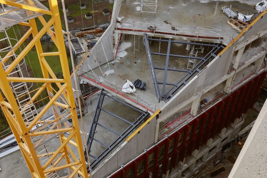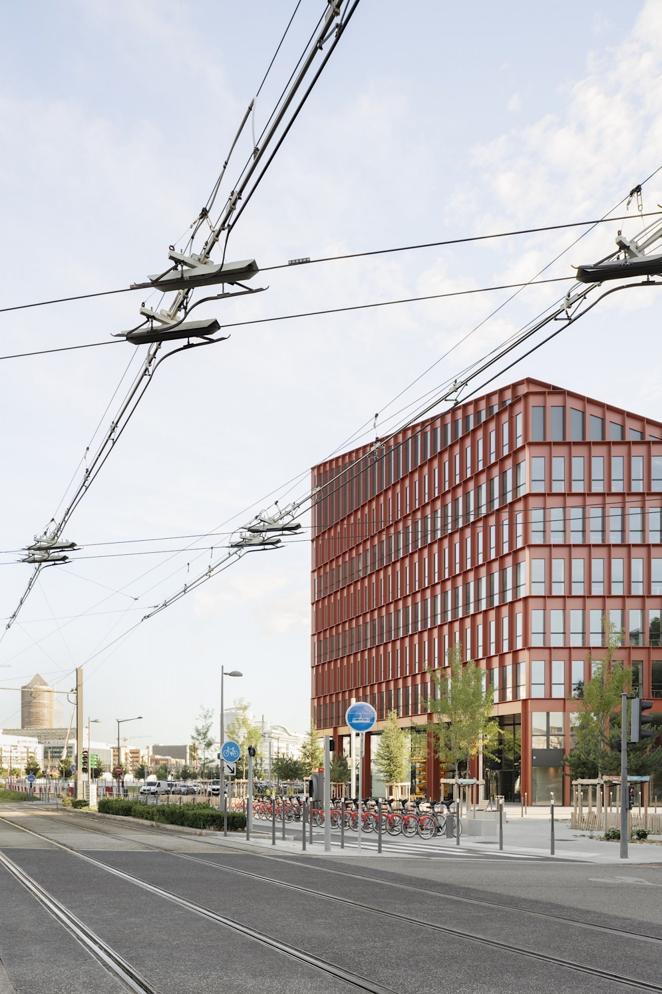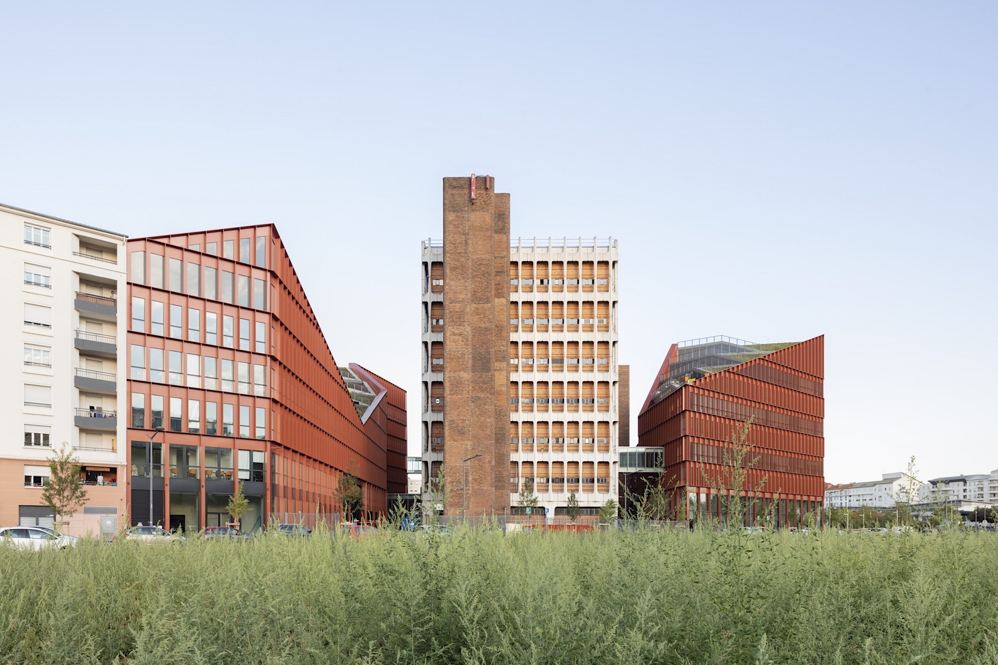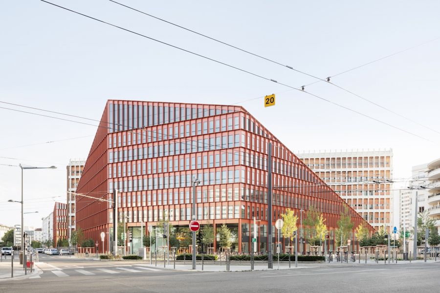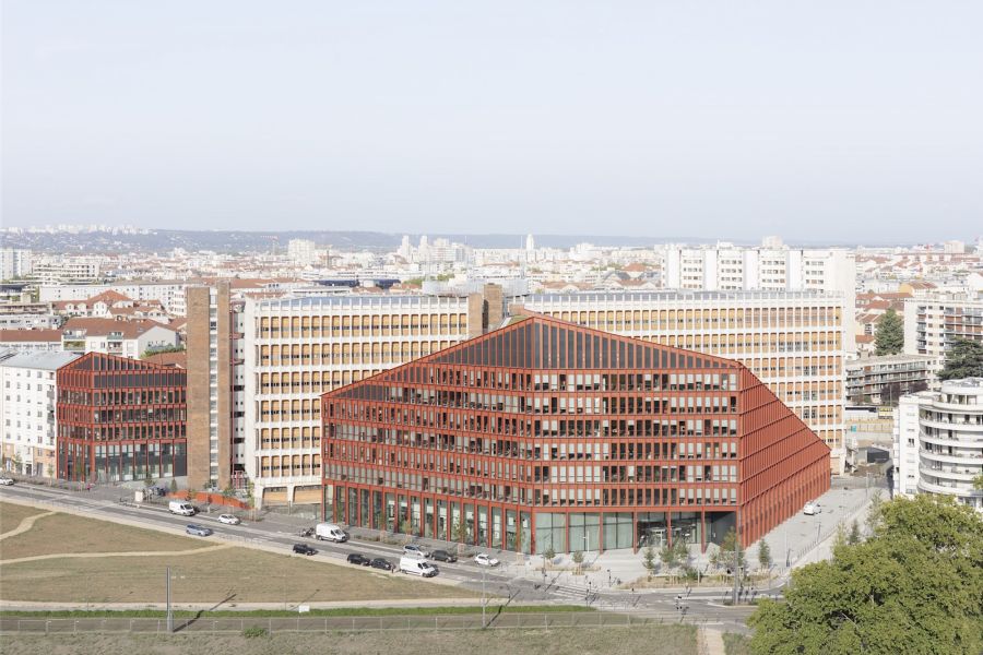 L’ensemble forme un volume singulier et un repère fort en lisière du quartier de la Part-Dieu.