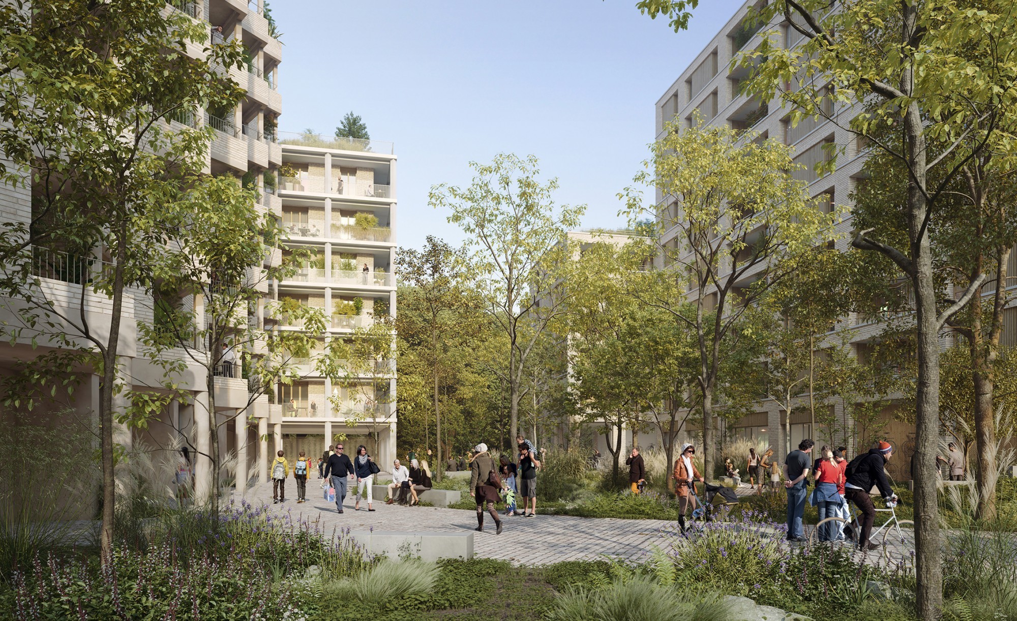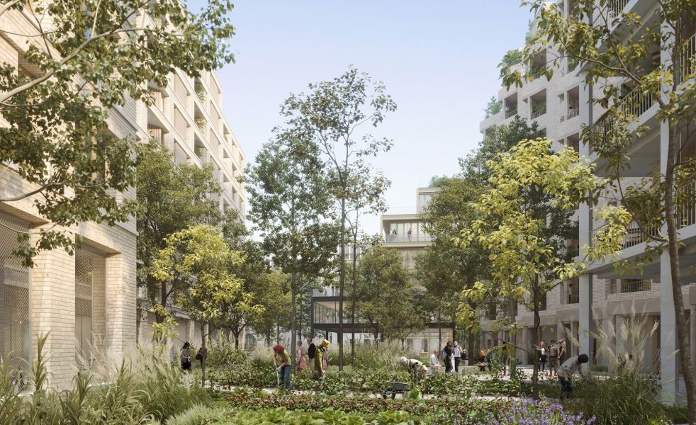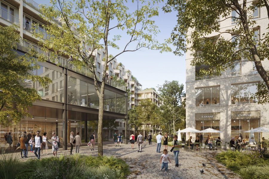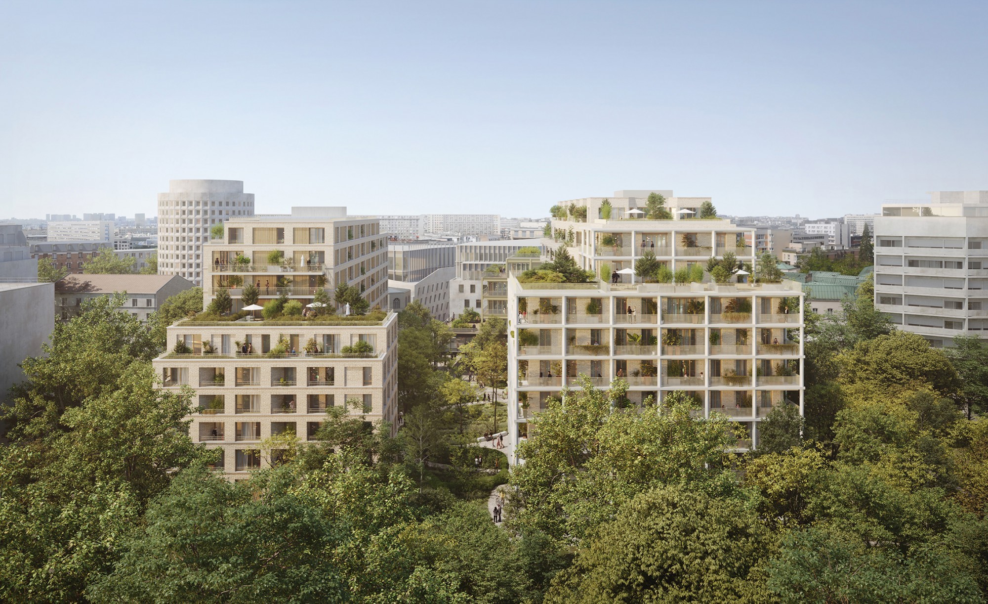 Sous la coordination de Hardel Le Bihan, la collaboration entre les trois agences d’architecture Barrault Pressacco, DVVD, Hardel Le Bihan et les paysagistes Bassinet Turquin assure une variété d’écriture à cet îlot de 26 000 m². La cohérence globale est assurée par l’emploi de matériaux identiques et l'entente sur des règles communes. Sur la rue de Picpus, le linéaire de la parcelle long de 100 mètres nous a poussés à implanter l’immeuble de logements en retrait de 20 mètres pour offrir aux habitants une placette publique d'environ 1000 m². La composition de la façade métallique du bâtiment de bureaux (HLB) exprime la reconversion de la halle d’activité existante (arch. Roland Schweitzer). L’immeuble est organisé en trois parties : la halle de hauteur R+1 est encastrée dans un volume bâti à R+4 couronné par un attique en retrait sur les façades, hors pignon. La toiture de la halle est transformée en terrasse accessible pour les bureaux.