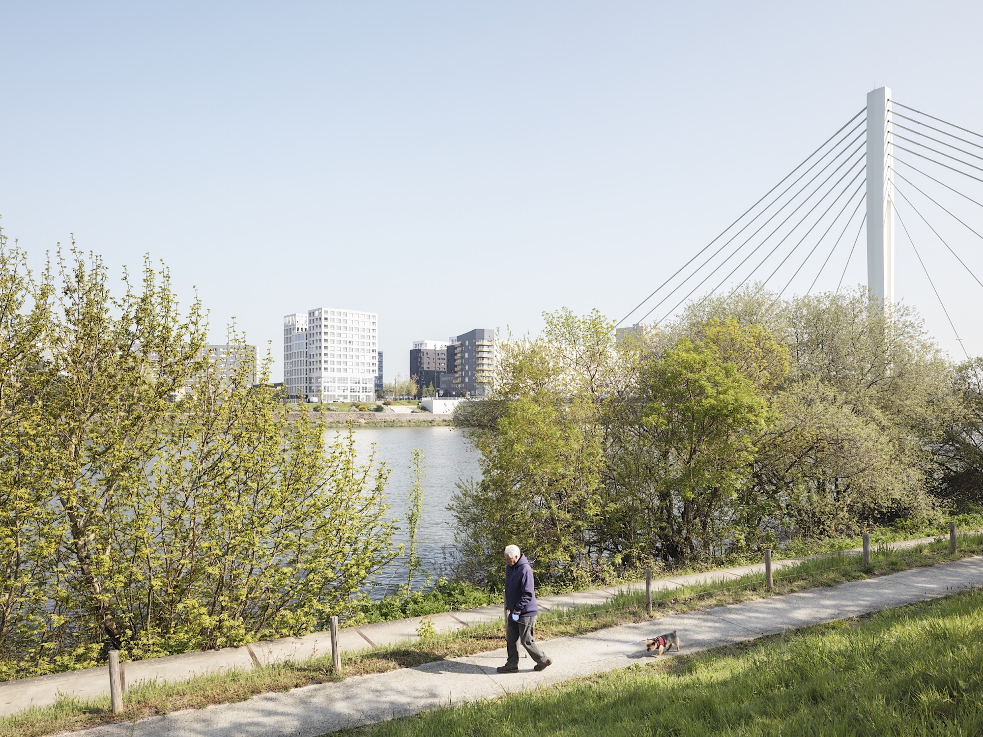 Au pied du pont Tabarly, l’immeuble visible de loin marque l’interface entre le quartier Malakoff, en pleine rénovation urbaine, le grand paysage de la Loire et l’Île de Nantes. Sa volumétrie et son traitement architectural s’adressent aussi au piéton et fonctionnent avec le quartier qui se développe à proximité immédiate.